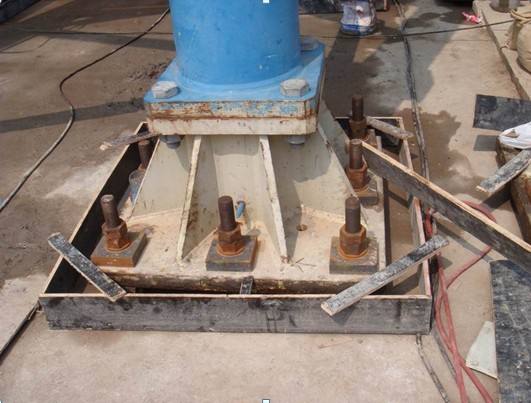 二次灌漿是指在地腳螺栓錨固灌漿完畢后,對(duì)設(shè)備或鋼結(jié)構(gòu)柱腳的底板底面與混凝土基礎(chǔ)表面之間的填充性灌漿工藝,以滿足緊密接觸底板并均勻傳遞荷載的要求。